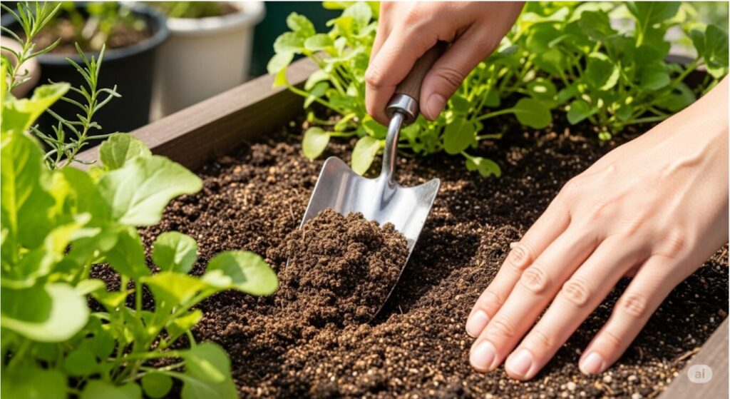 乾燥させたゴミを肥料にするには、土と混ぜて時間を置き、「堆肥化(発酵・分解)」させるプロセスが必要です。具体的な手順は以下の通りです。